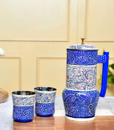 Aluminium Jug Set with 2 Glass Tumblers - 21 cm for kitchen Decor ,Table Top , And Home Decoration