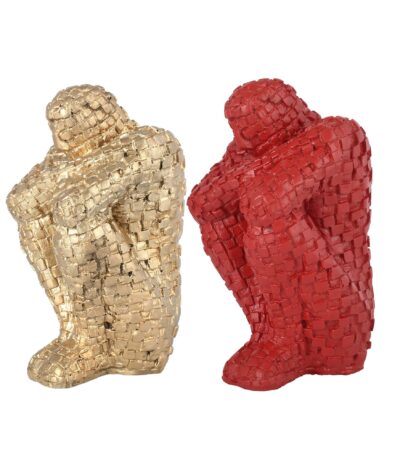 Handcrafted Thinking Mens in Sitting Position for Home Decor/Gifting/Living Room Decorative Showpiece - 20 cm (Polyresin, Red, Gold)