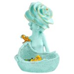 LADY with Basket Showpiece for Home Decor light green Showpiece | Girl Basket Showpiece & Office Decor Showpiece