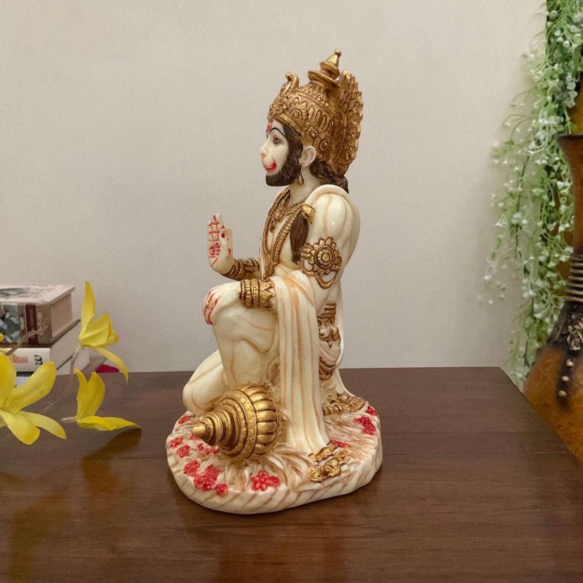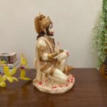 Hanuman Ji Marble Dust Murti Idol, Poly Marble Sitting Bajrang Bali for Pooja Temple Home Decoration Item Positive Envirement