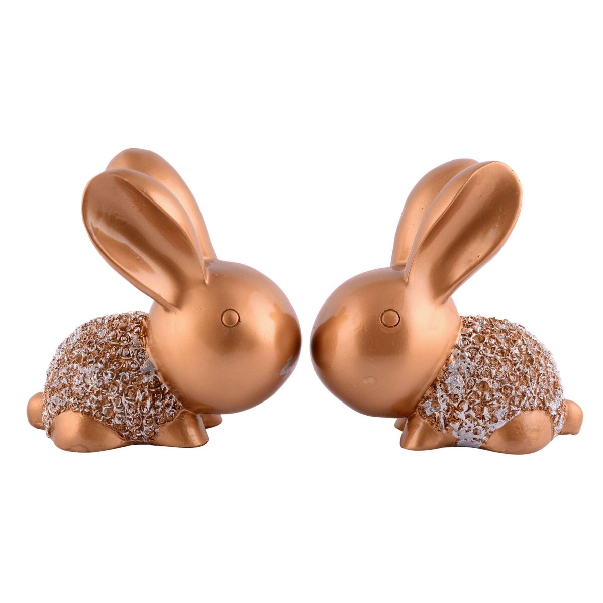 Rabbit Cute Pair Statue for Home Decor Showpiece | Kids Room Decorative Showpiece (Copper)