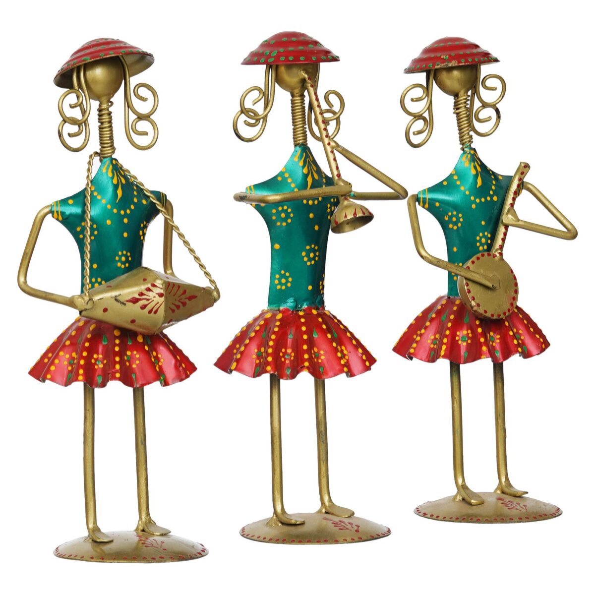 Set of 3 Antique Metal Decorative Tribal Musician Dolls Playing Musical Instrument Handicraft Item for Diwali Gifts | Home & office Decoration